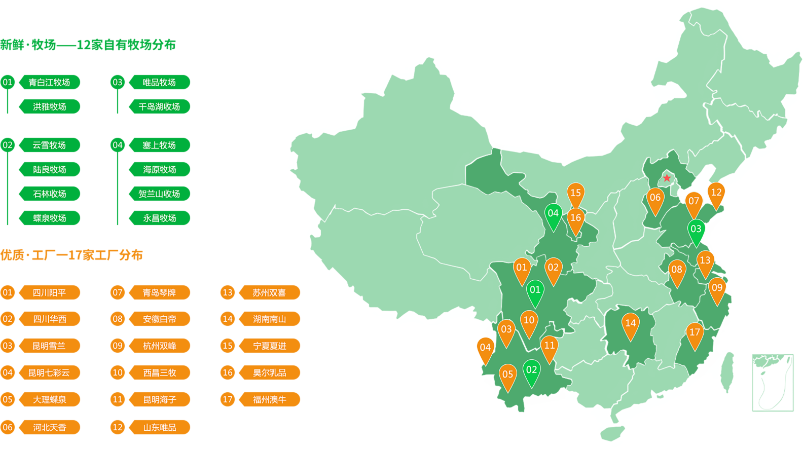 中國最具有活力與創(chuàng)新的企業(yè)之一。公司聚焦低溫乳品,立足西南,并深度布局華東、華中、華北、西北市場,構(gòu)建了以“鮮戰(zhàn)略”為核心價值的城市型乳企聯(lián)合艦隊。公司為用戶提供優(yōu)質(zhì)營養(yǎng)的乳品,個性而多樣化的消費體驗,主張鮮活的生活態(tài)度,致力于成為“新鮮一代的選擇”。